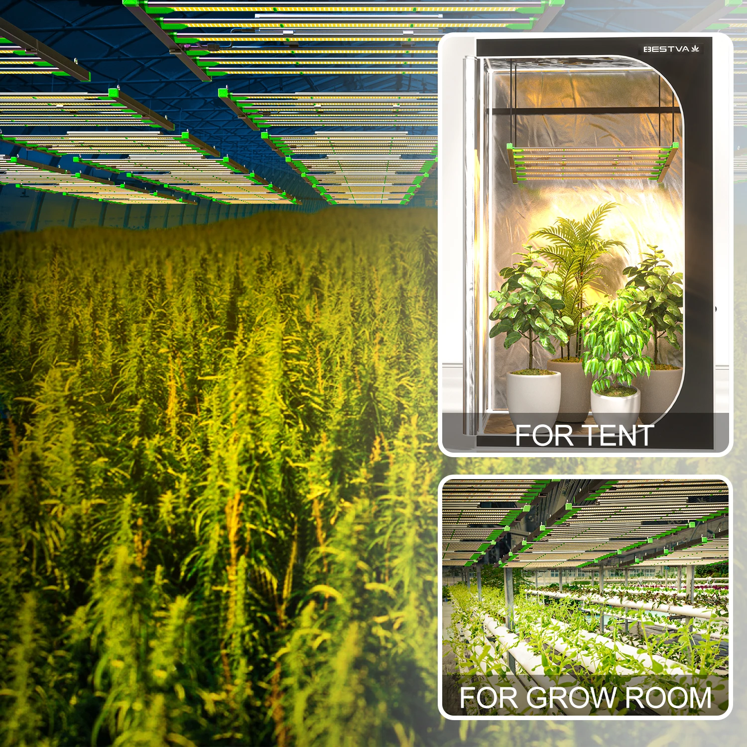 Bestva-это решение для комнатной растущей среды, где первостепенное значение имеет высота потолка и расстояние от навеса. Модель отлично подходит для использования в вертикальных стойках, низких помещениях, над скамейками или даже в палатках. Наша лампа с модернизированным чипом LM301B, 6 СВЕТОДИОДНЫЙ баров, более высокий светильник интенсивности, меньше светильник, лучше люменов и номинальных значений, чем обычные светодиодный чипы. Которые максимизируют урожай и экономят энергию.
