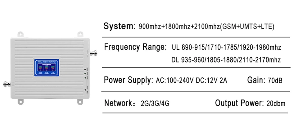 Отзывы о Трехдиапазонный сотовый усилитель 2G 3G 4G GSM 900 LTE DCS 1800 UMTS 2100 Усилитель мобильного