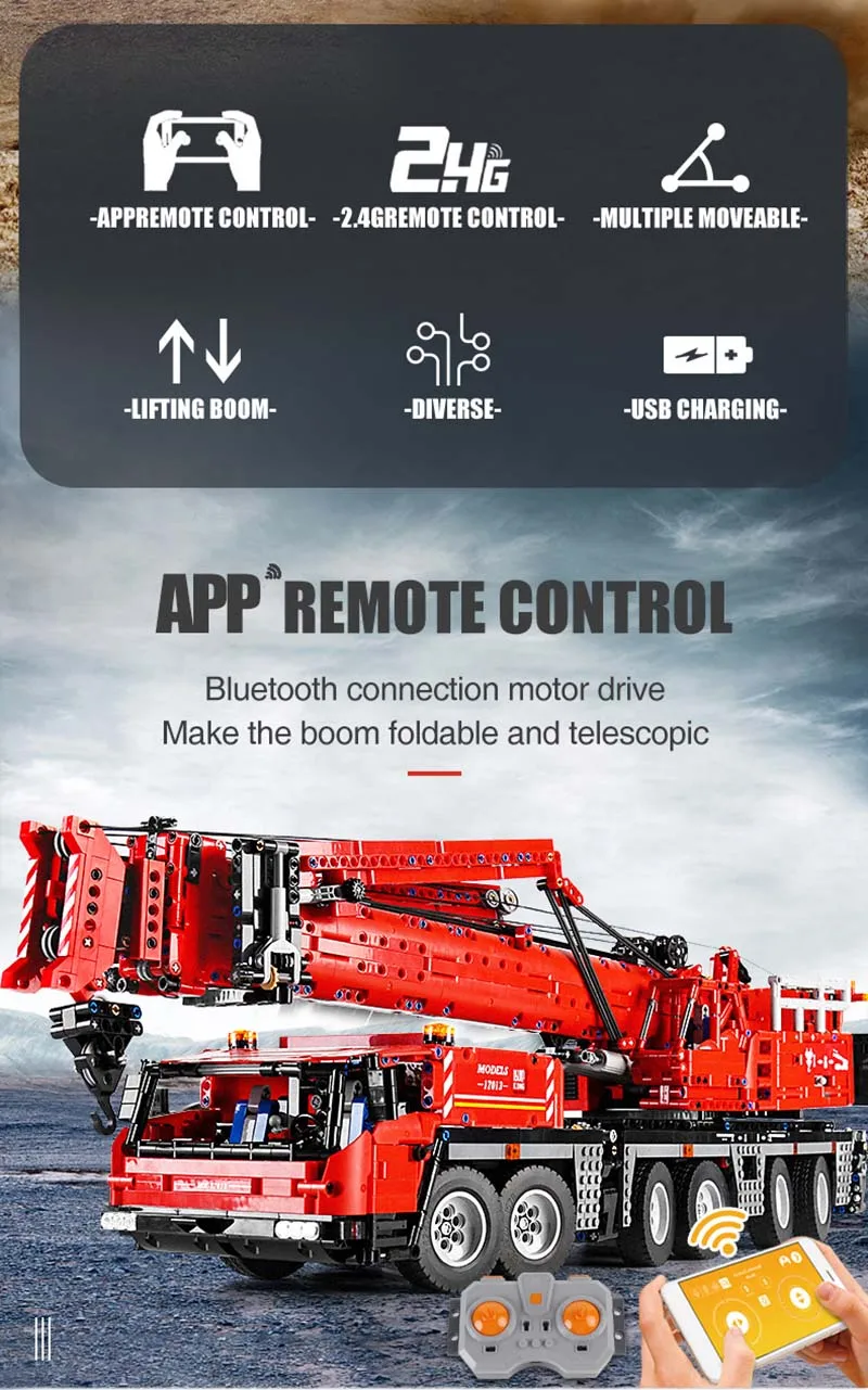 Отзывы о Высокотехнологичный моторизованный кран Mould King серии APP RC Красного GMK модель