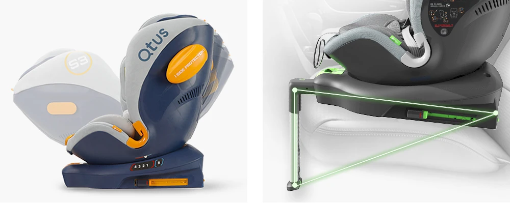 Его можно поворачивать на 360 ° и фиксировать с помощью интерфейса ISOFIX, что облегчает установку и значительно уменьшает возможность неправильного использования.