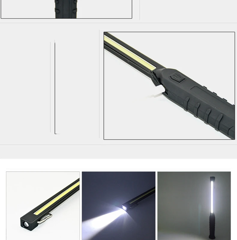 Особенности: с подвесным железным крючком, ярким COB, встроенной литиевой батареей, двумя магнитами внизу, красными и синими сигнальными огнями, угловым основанием, регулировкой под разными углами, подходит для многих случаев.