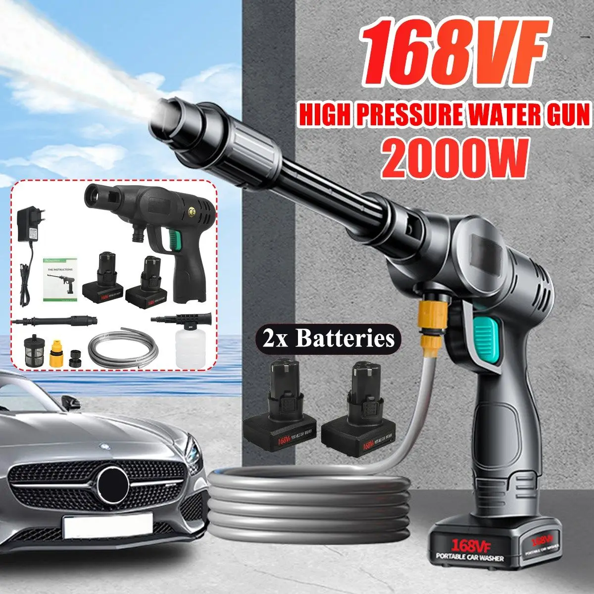 Отзывы о Беспроводной пистолет-распылитель для мойки автомобиля под высоким давлением 2000