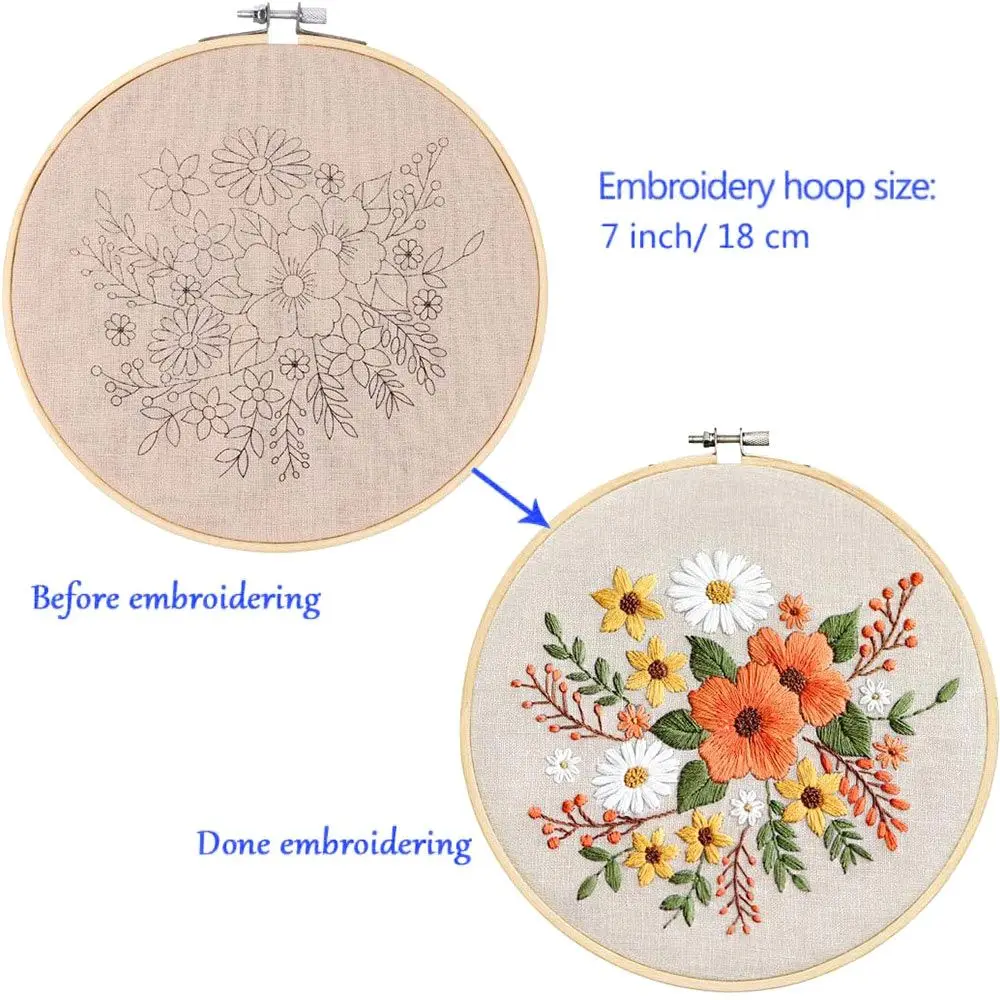 Посылка включает в себя: напечатанная вышитая ткань * 1 достаточно Резьбовая доска * 1 специальная вышитая игла * 3 HD рисунок * 1 бамбуковый обруч для вышивки * 1