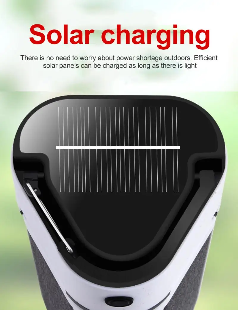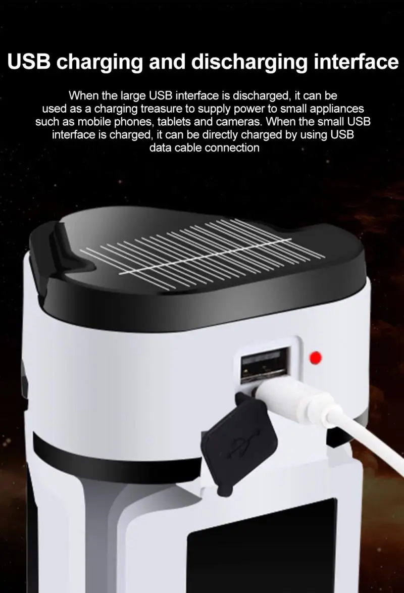 1. Зарядка от USB и солнечных батарей: походный светильник можно заряжать через порт micro USB с полной батареей. Солнечная панель на верхней части поддерживает зарядку при аварийных условиях на открытом воздухе без розеток или источника питания.