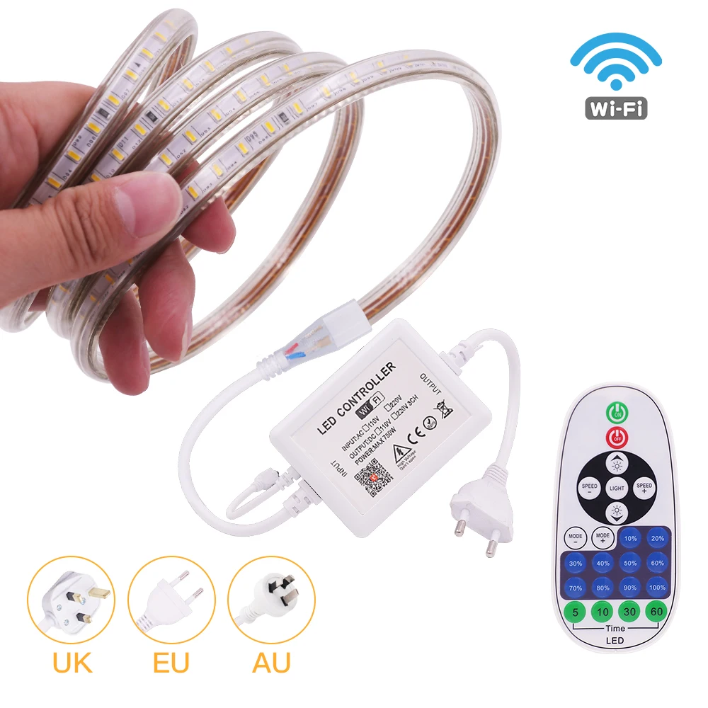 Отзывы о Светодиодная лента Tuya с Wi-Fi 220 В приглушаемая водонепроницаемая 120 светодиодов/м