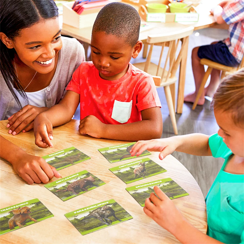 2.The kids enjoy matching up the dinosaur digging fossil kit with the card and then parents read the description of the type of dinosaur.