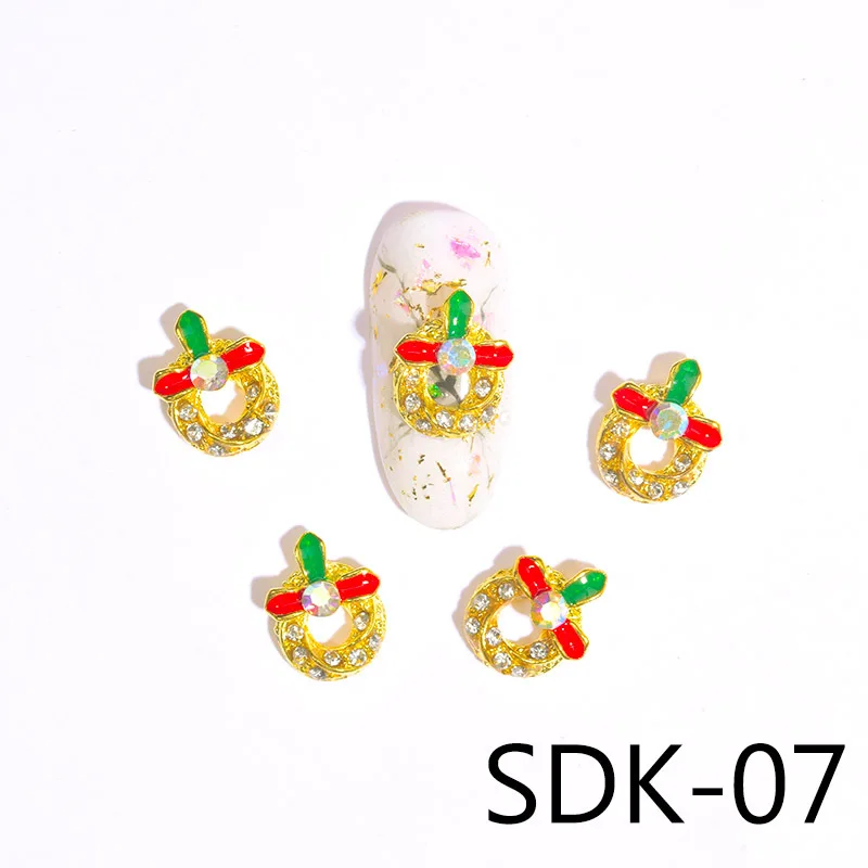 Отзывы о 5pcs Golden Christmas manicure ornament charm nail rhinestone glass gemstone design DIY X-MAS gift art decorations - купить по