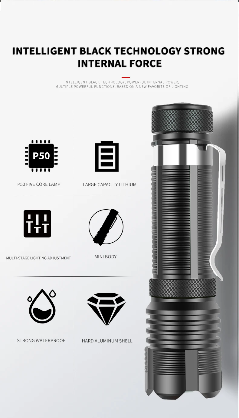 Вариант A:1 мини-фонарик (черный) (без аккумулятора)Вариант B: 1 мини-фонарик (черный) + 1 аккумулятор 14500 Характеристика:* Модный внешний вид, маленький размер, легко носить с собой* XHP50 Ламповые бусины, супер светильник, освещает ваш мир