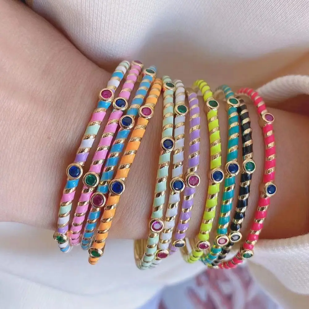 Отзывы о 5 шт. модный Новейший Дизайн Радужный цвет эмалированный браслет из циркония