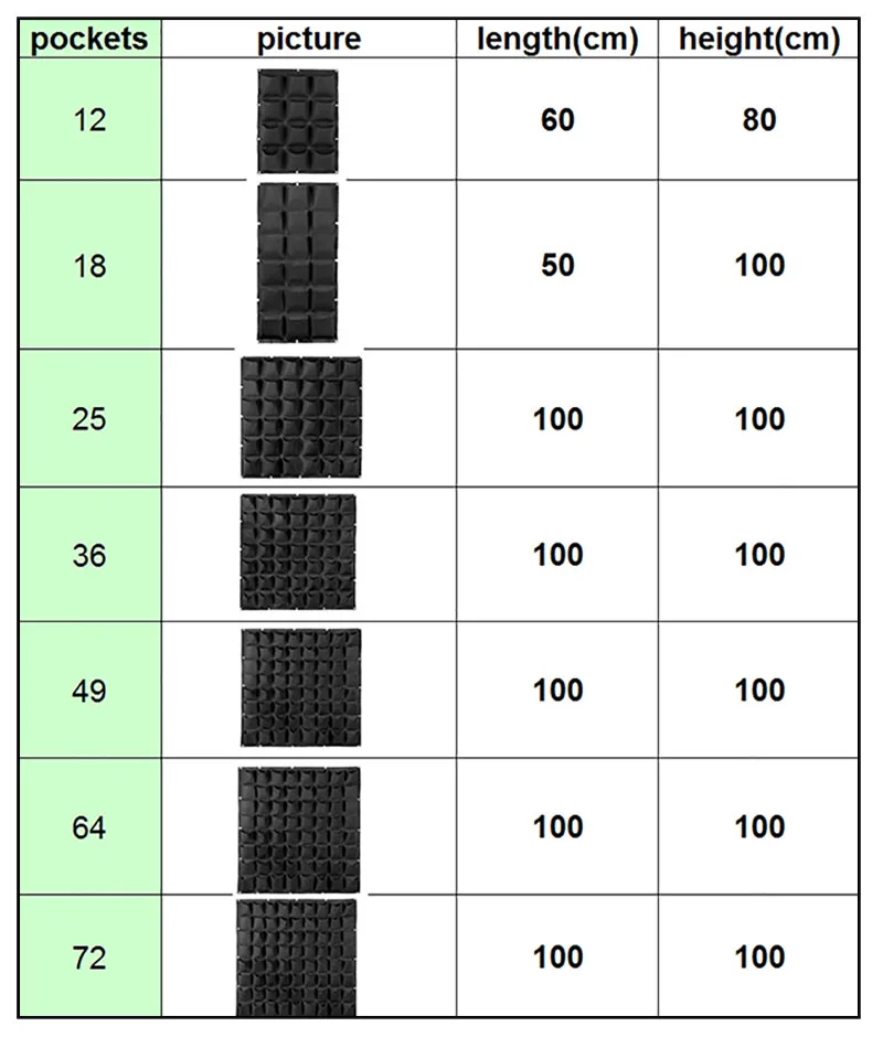 Спецификация:Материал: Нетканая тканьРазмер: следующим образомЦвет: черный/зеленый на выборХарактеристика:1. Многоразовые, портативные, экономичные и практичные.2. Войлочный материал, соответствует экологическим стандартам, нетоксичный биоразлагаемый, анти-ультрафиолетовый, антикоррозийный, солнцезащитный, тепловой.3. Висит на стенах, экономит место, посадки клубники, овощей, листвы растений.4. Избыток воды автоматически сливается через войлочный материал. Мягкий войлок, легкий дизайн для легкого движения и подвешивания.5. Зеленая стена-это новый тип озеленения внутренних и наружных стен, зеленая для ваших стен и делает ее более красивой;Также подходит для украшения в помещении, большая зеленая стена зеленых растений позволяет людям чувствовать себя комфортно.Посылка включает в себя:1 * Настенные подвесные мешки для посадки