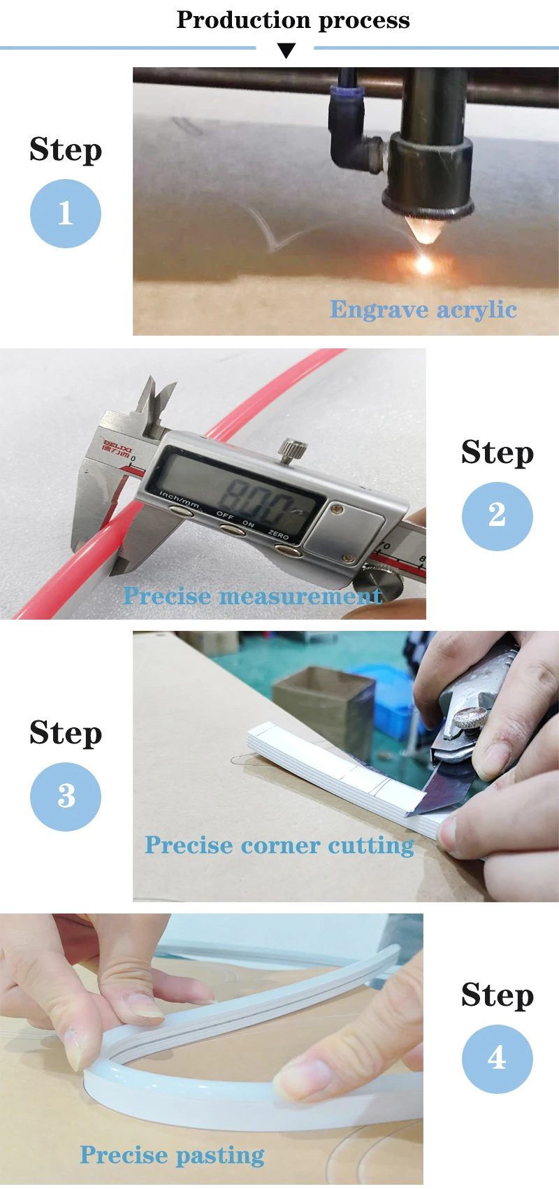 4. Никаких царапин, никаких дополнительных клея на акриловой доске 5 мм после завершения знака