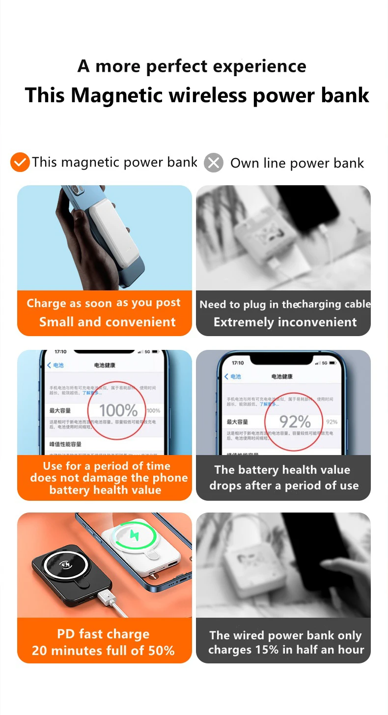 1. PD20W Магнитный поглощающий внешний аккумулятор + 10W Беспроводная зарядка