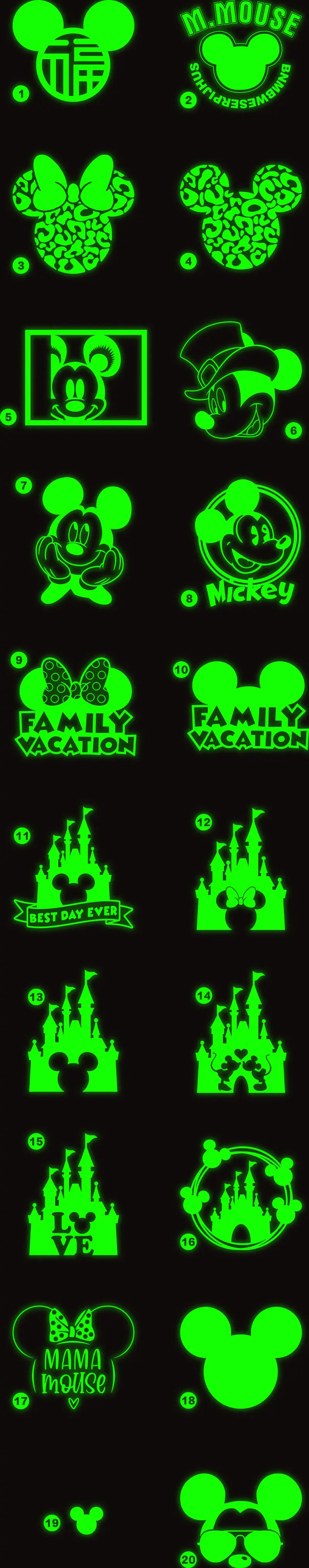 Отзывы о Зеленые светящиеся наклейки Диснея виниловые с Микки и Минни для глажки тепла