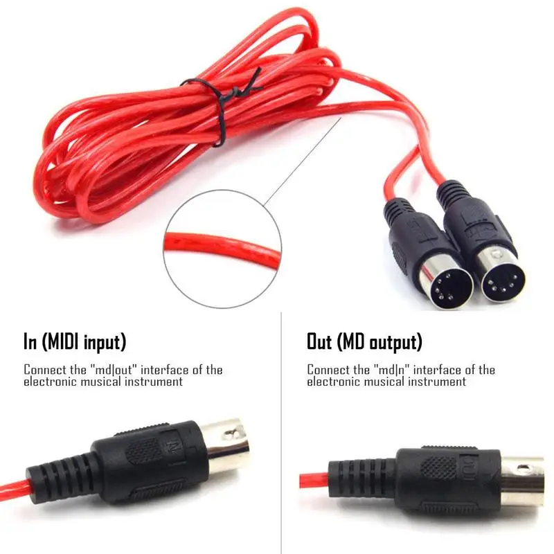 1.MIDI кабель со штыревыми соединителями на обоих концах для подключения: Подключите 5-контактный проводной до конца к вашему midi-устройства, музыкальных инструментов. Это один кабель, который вставляет один конец в MIDI, а другой в MIDI out.