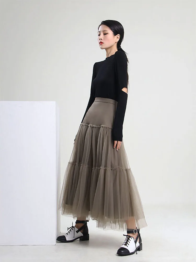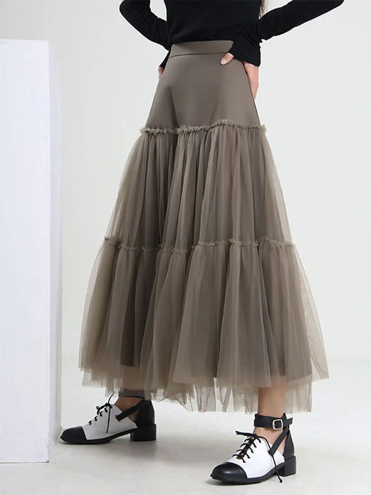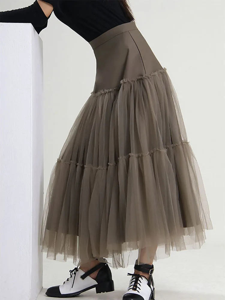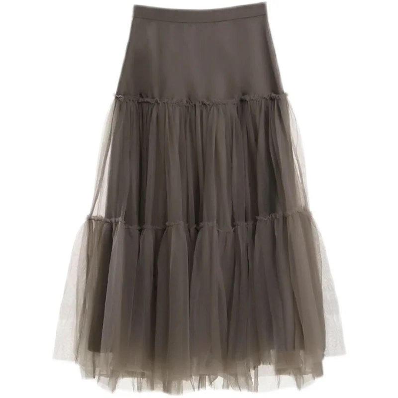 Отзывы о LANMREM 2022 Осенняя однотонная сетчатая юбка с высокой талией плиссированная средней
