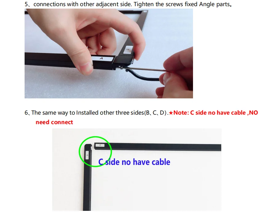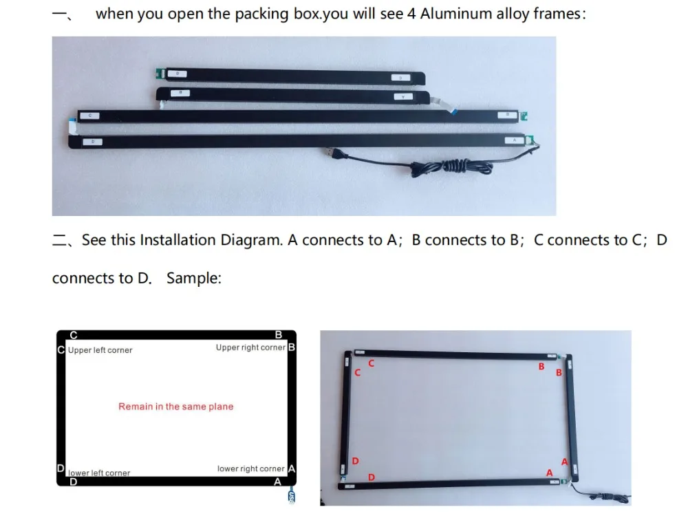 Инфракрасная сенсорная панель Сенсорный экран IR-это сенсорная рамка, которая обычно устанавливается перед экраном дисплея. Рамка интегрирована с печатной платой, которая содержит линейку ИК-светодиодов и фото транзисторов, скрытых за рамкой сенсорной рамки. Каждый из ИК-светодиодов и фототранзисторов устанавливается на противоположных сторонах, чтобы создать сетку невидимого инфракрасного светильник. Ободок защищает детали от работы Супер преимущества для 43 дюймов 10 точек ИК мульти сенсорный экран: