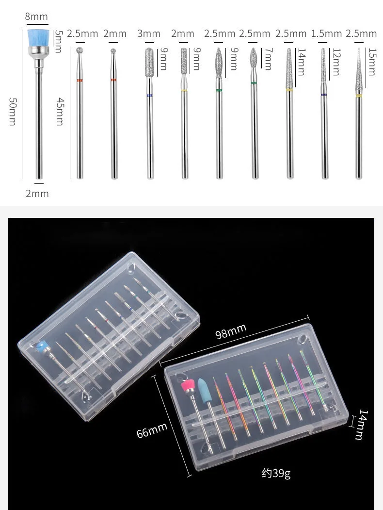 Отзывы о Набор Алмазных фрез набор из 10 твердосплавных насадок радужного цвета для