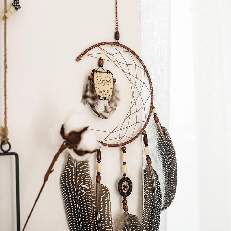 Отзывы о Подвеска в скандинавском стиле с изображением совы и перьев плетеная сетчатая
