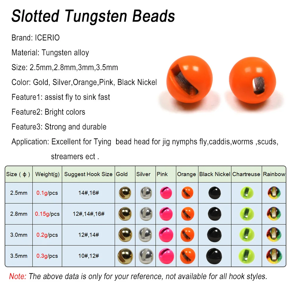 ICERIO 20 шт 2,5 мм, 2,8 мм, 3,0 мм, 3,5 мм шлицевые вольфрамовые бусины быстро моющиеся бусины джиг Nymph Scud червячный шарик голова муха завязывая материал