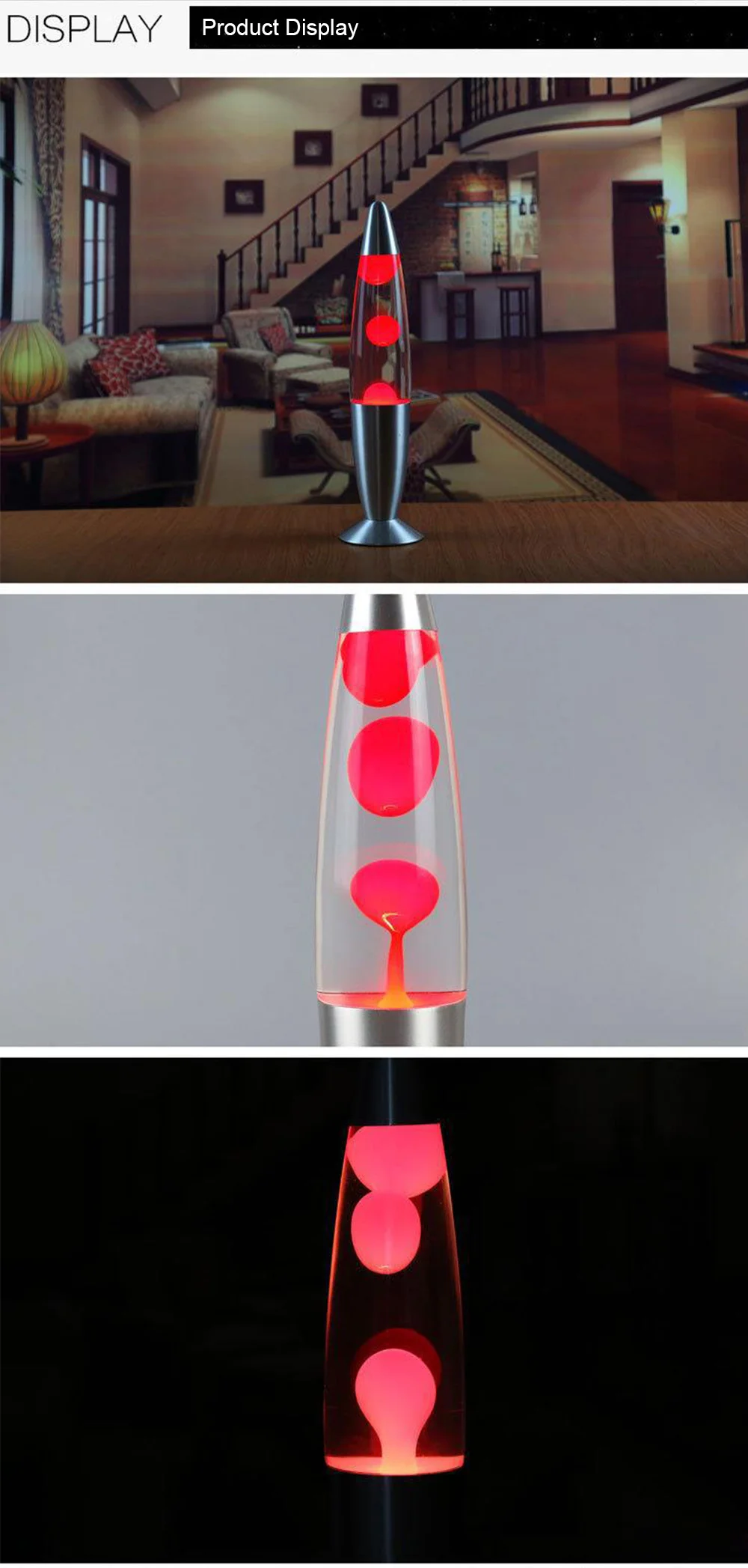 После того, как восковой блок в стеклянной бутылке нагревается и расплавляется лампочкой на основании, тепловая энергия делает разницу температур между верхней и нижней частями флакон с воском, формируя конвекцию, И затем восковый шар плавает вверх и вниз в бутылке, Как Медузы свободно плавают в бутылке.