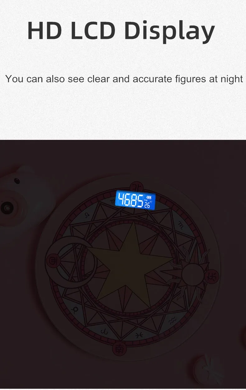6. Интеллектуальный автоматический ВКЛ-ВЫКЛ дизайн более энергосберегающий. Масштаб включится сразу же, когда вы наступаете на него, и выключается, когда тело не включено через восемь секунд.
