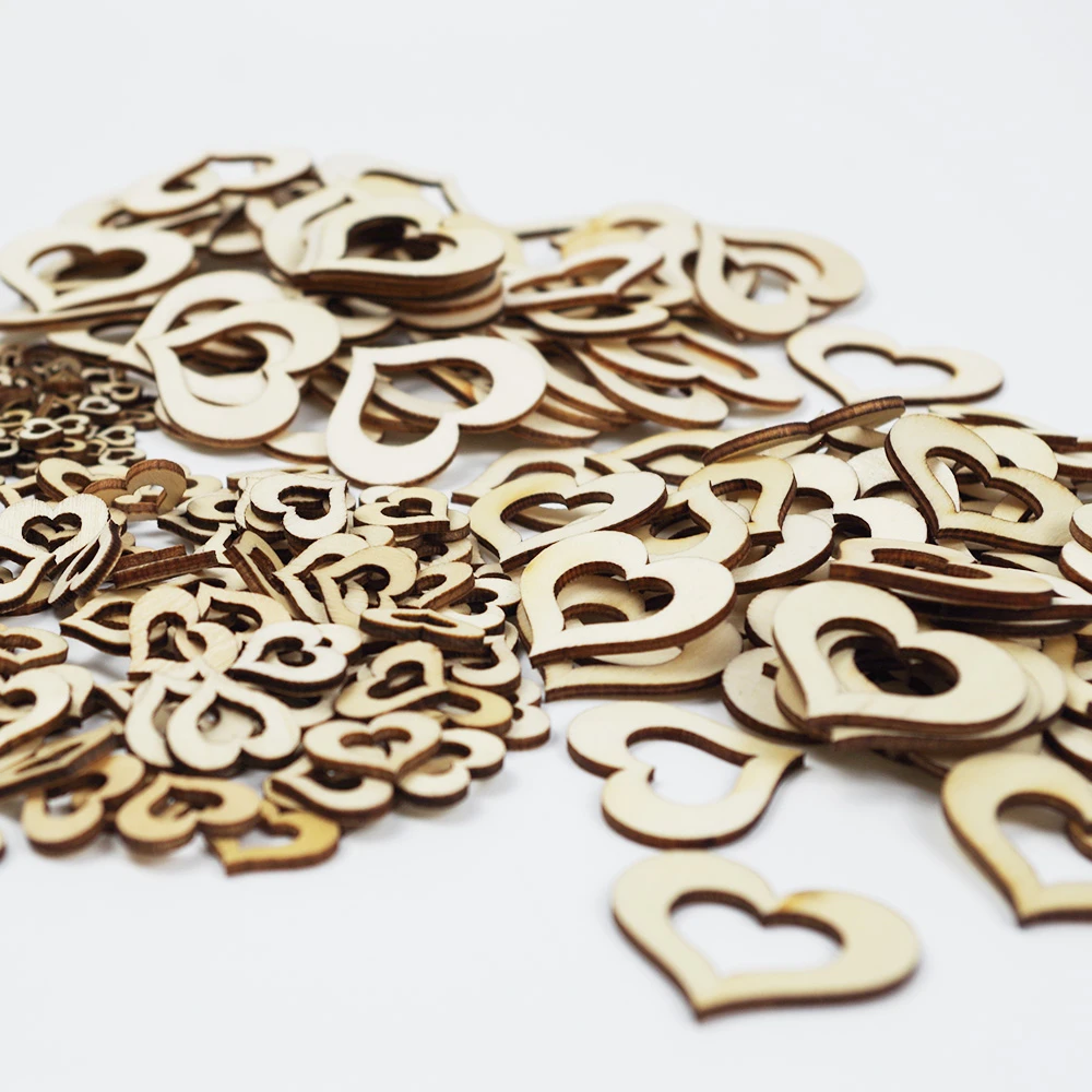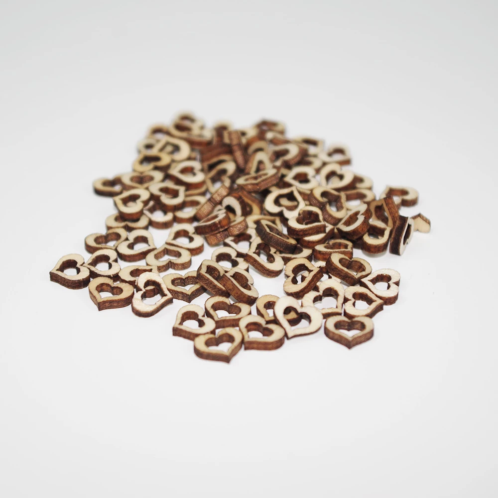 Отзывы о 50/100 шт. 10-50 мм Деревянные фишки с сердечками и пустотами, естественной вырезки лазером, для ремесел, свадебного украшения стола на День святого Валентина.