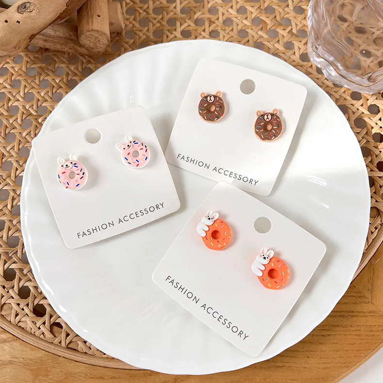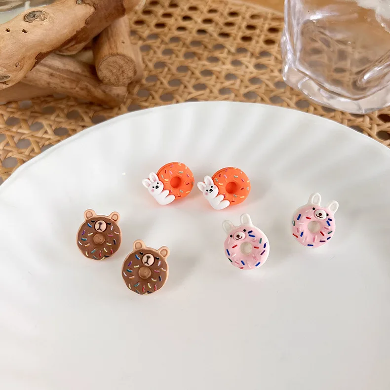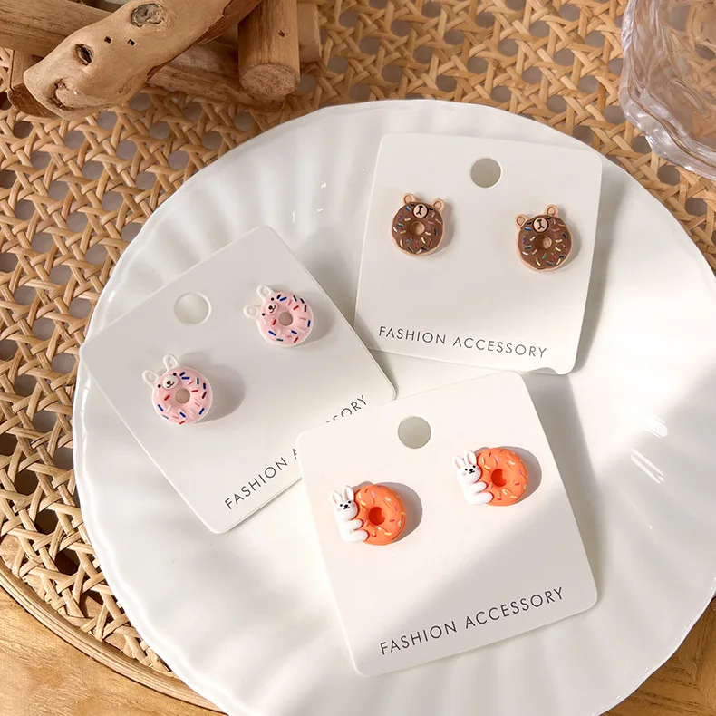 Отзывы о Милые серьги-гвоздики QiLuxy с изображением мультяшного пончика животного для