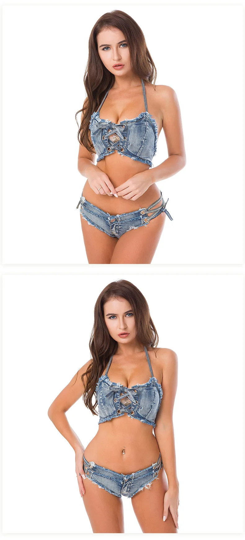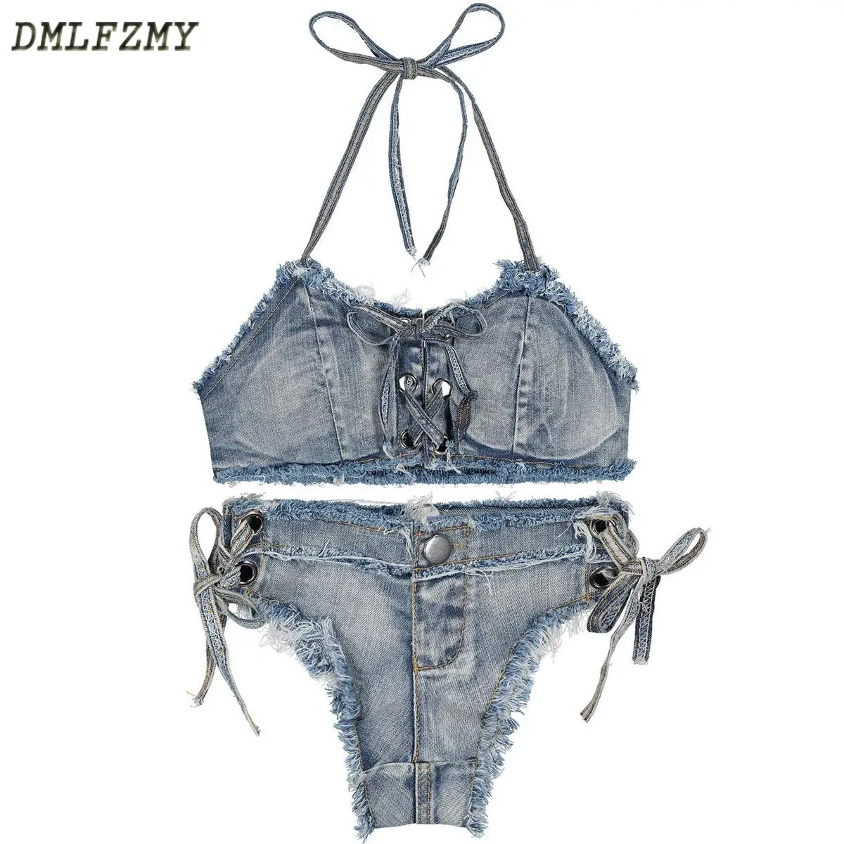 Отзывы о Женский джинсовый комплект бикини сексуальный пляжный купальник джинсы