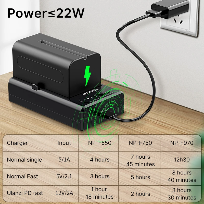 Отзывы о Быстрое зарядное устройство VIJIM Ulanzi NP-F01 22W PD QC для Sony NP-F550 NP-F750 NP-F970 нескольких