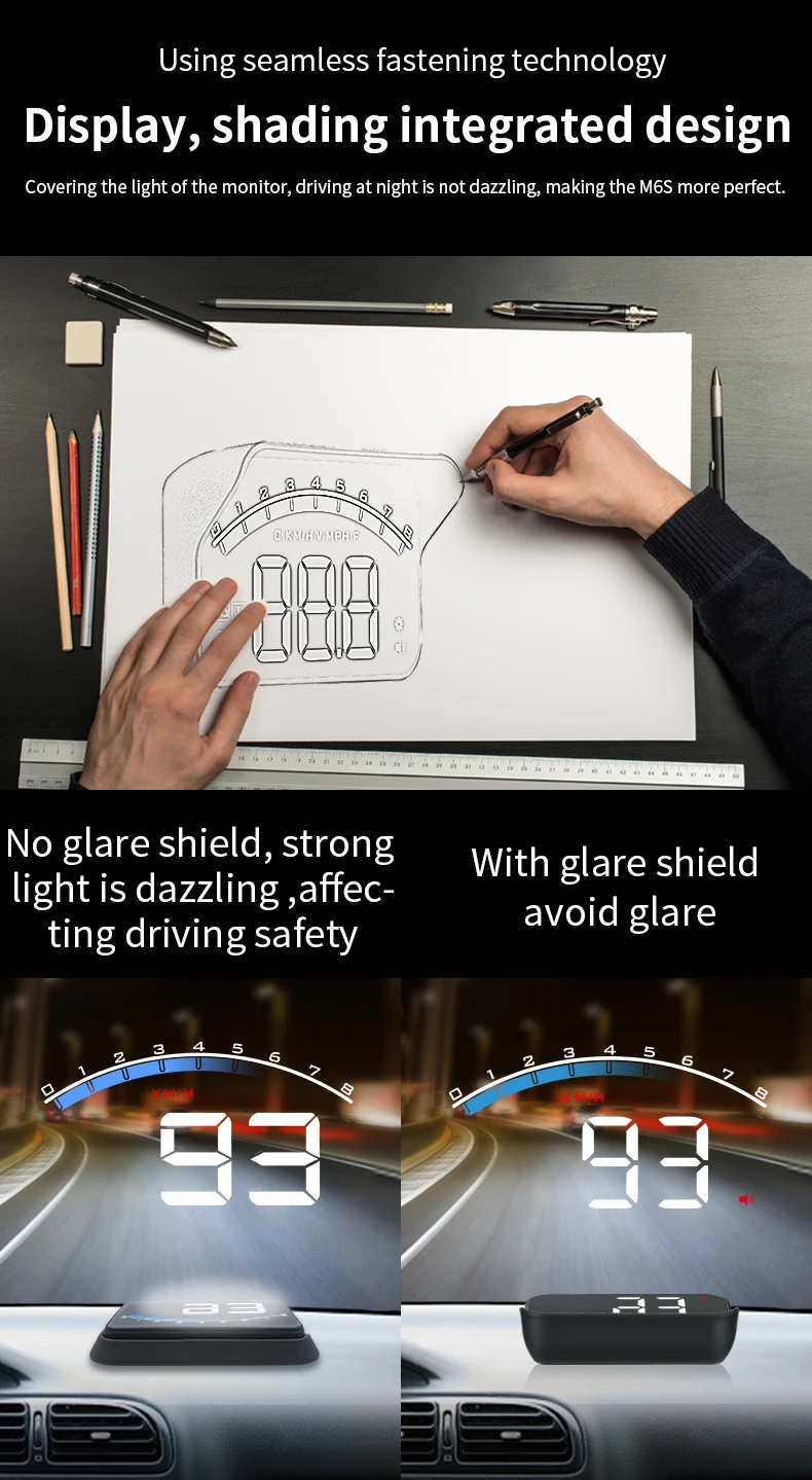 M6S HUD Автомобильный дисплей Автомобильная электроника км/ч MPH OBD превышение скорости охранной сигнализации лобовое стекло проектор дисплей автомобиля RPM метр