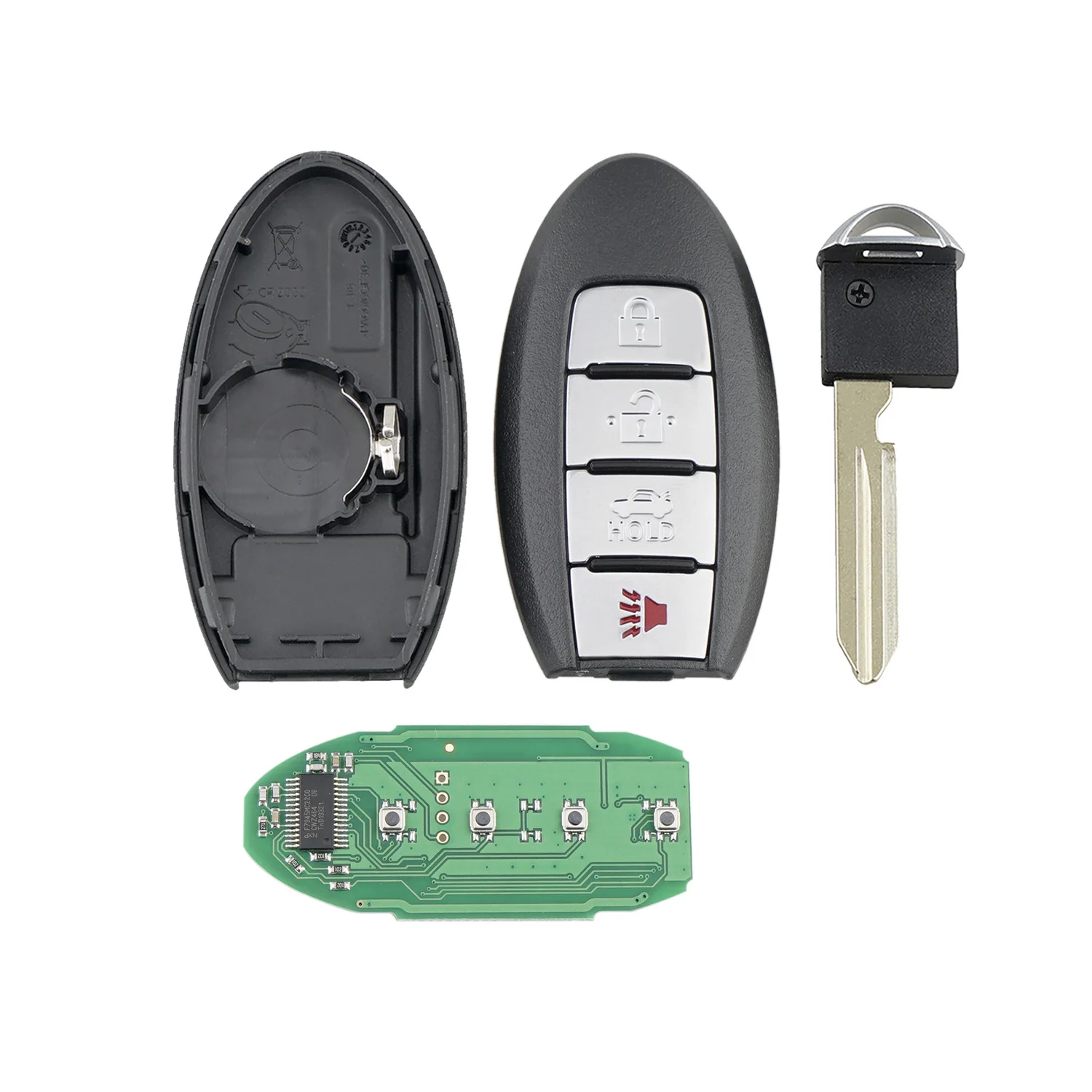 Продукт включает в себя корпус ключа, лезвие, печатную плату, чип и батарею. Это полный дистанционный ключ.