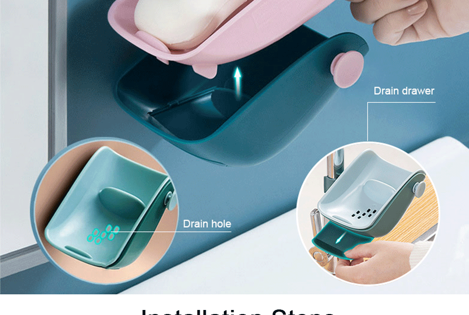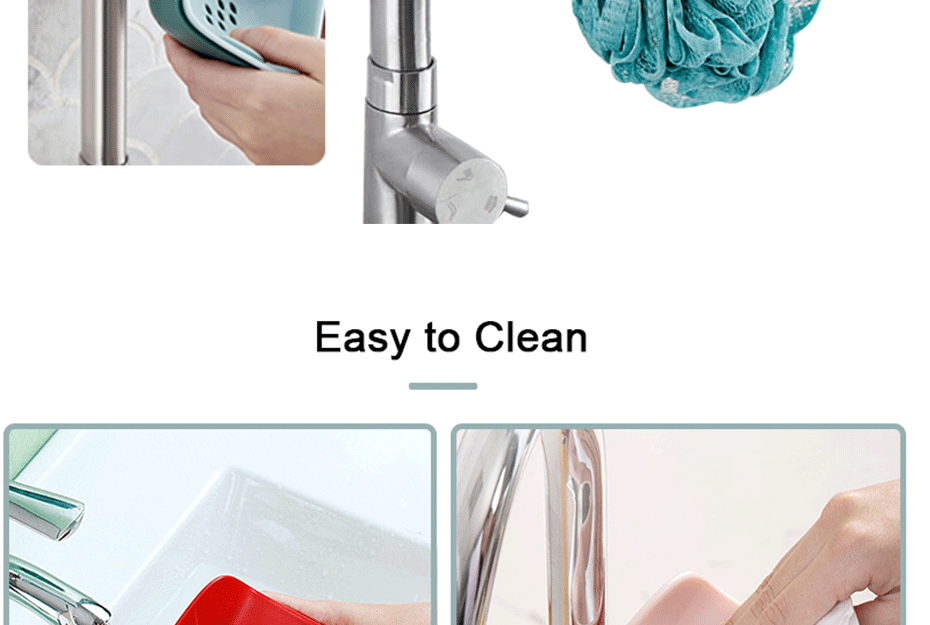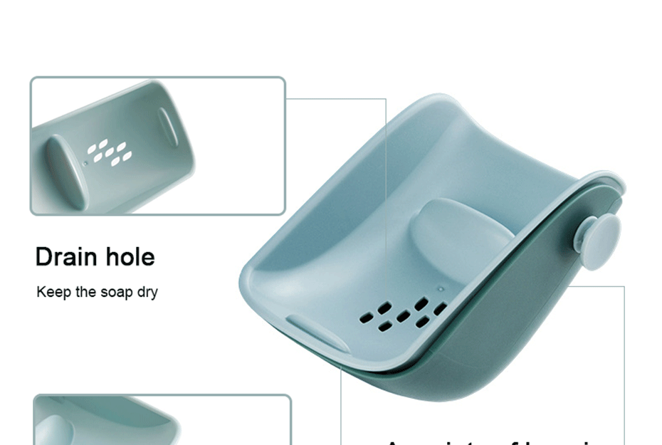2. Двойной слой: Двухслойный дизайн, верхний слой имеет сливные отверстия, вы можете положить мыло, а нижний слой может собрать воду, которая течет вниз, не беспокоясь о том, что вода проливается повсюду. Мыльница может быть разобрана. Через некоторое время разобрать мыльную коробку и вылить сточную воду, собранную в нижний слой.