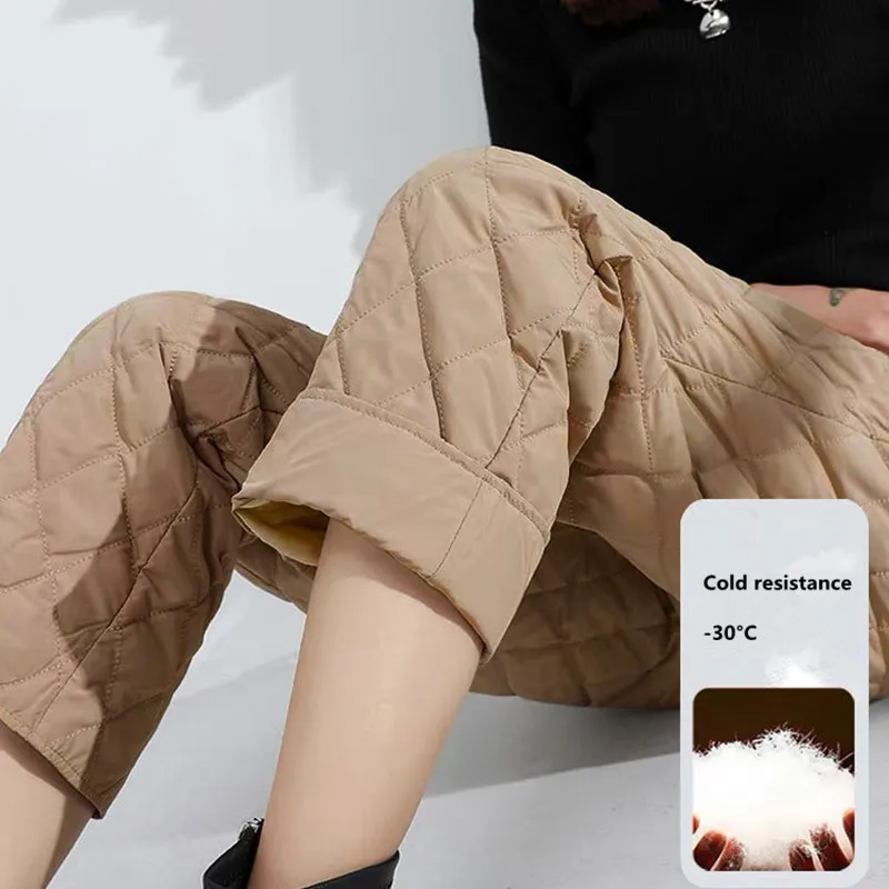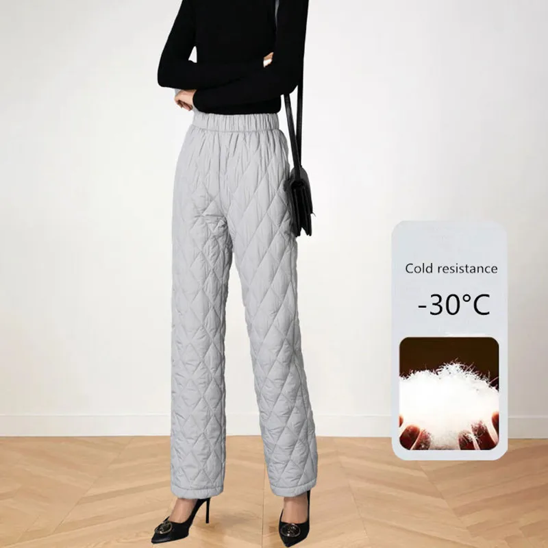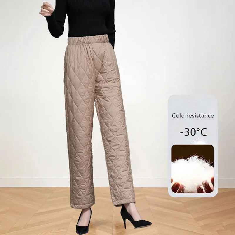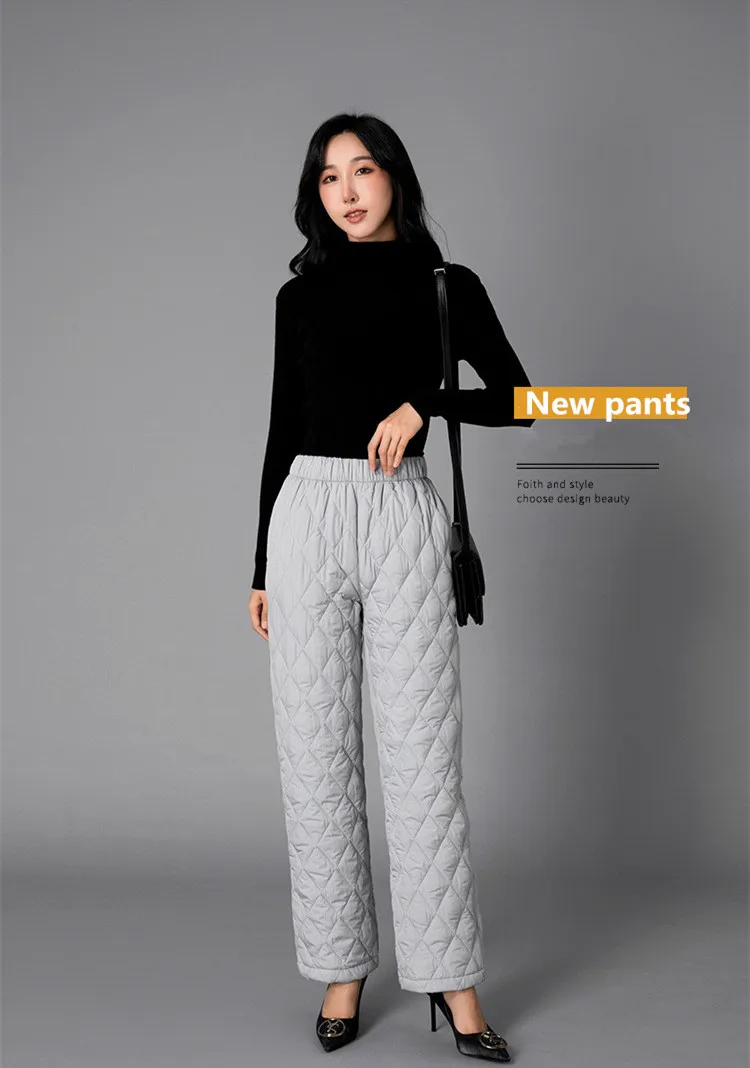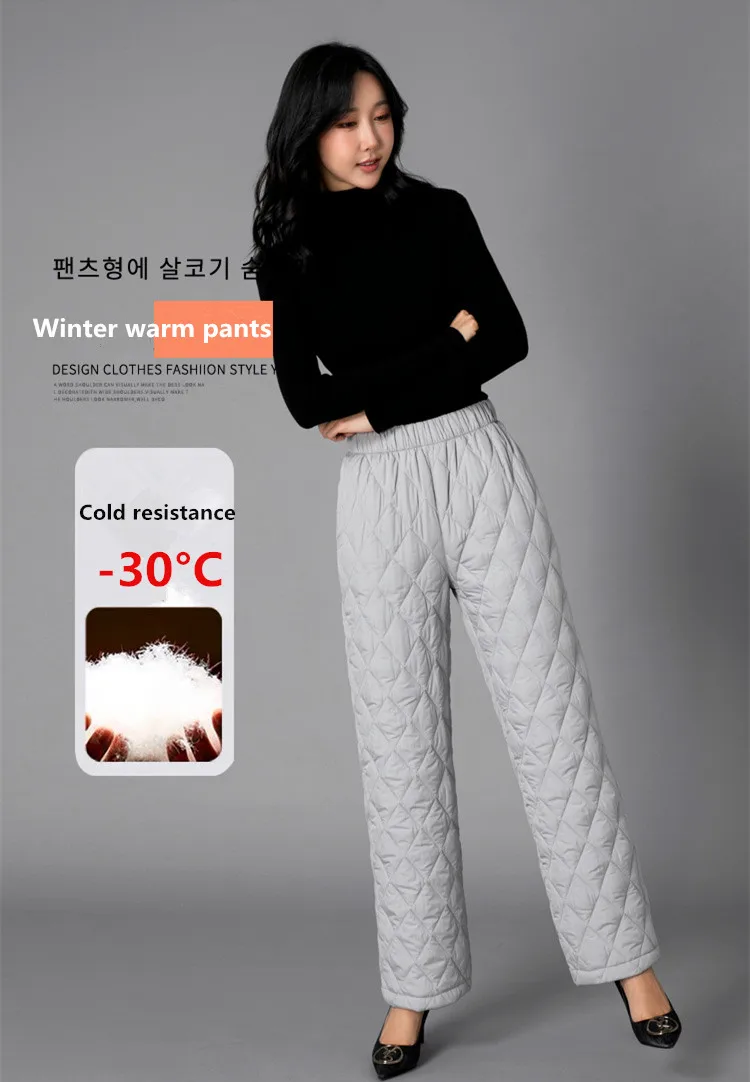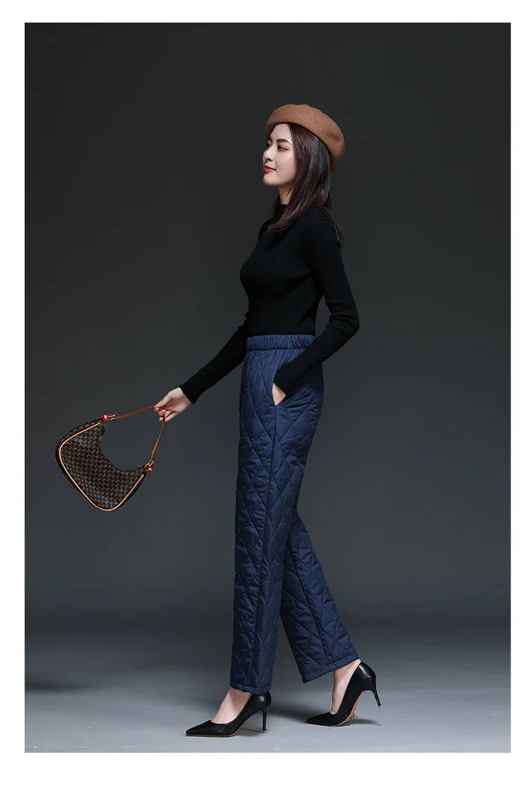 Женские зимние Пуховые брюки, теплые эластичные брюки с высокой талией, пуховые хлопковые стеганые прямые широкие брюки