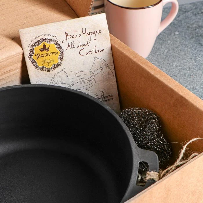Казан-кастрюля чугунный литой, 3 л, премиум набор