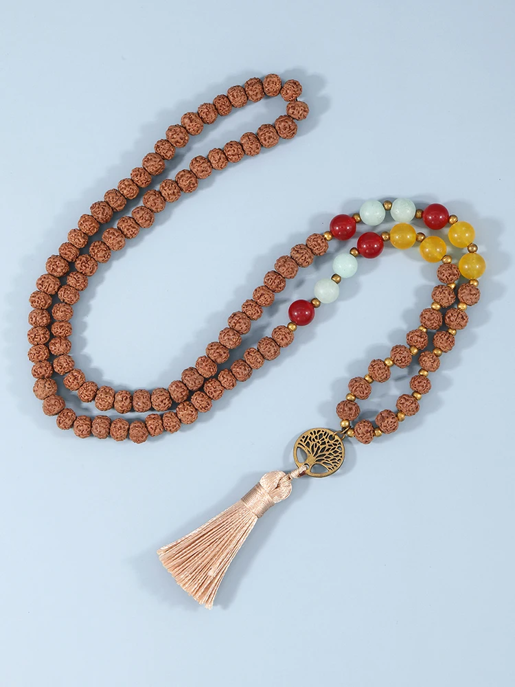YUOKIAA натуральная рудракша Bodhi 108 молитва бусы Mala ожерелье буддизм Розария кисточкой ожерелье богемный медитация Йога Japamala