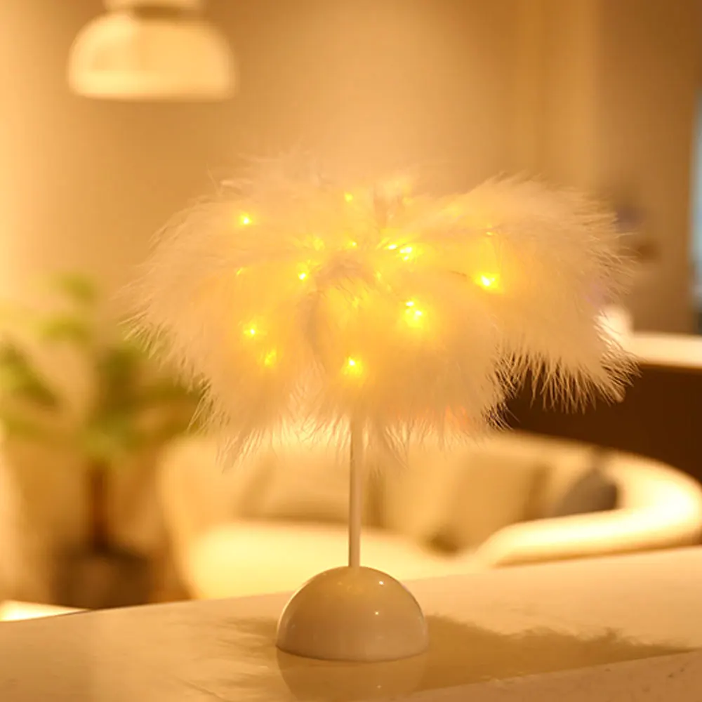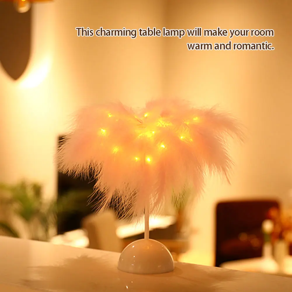 Романтическое Украшение: чисто белые перья с теплым белым освещением, эта Очаровательная настольная лампа сделает вашу комнату теплой и романтичной.