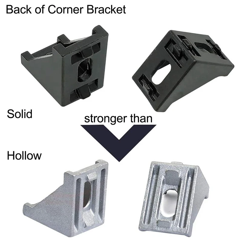 Алюминиевый угловой кронштейн используется для подключения алюминиевых профилей 20 мм под углом 90 градусов и подходит для большинства метрических алюминиевых профилей серии 20.