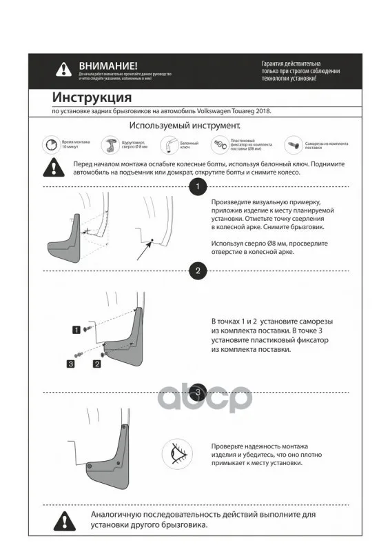 Отзывы о Комплект Брызговиков Volkswagen Touareg Iii 2018-Н.В. 2 Шт. С Крепежом Задние Rival арт. 25808002 -