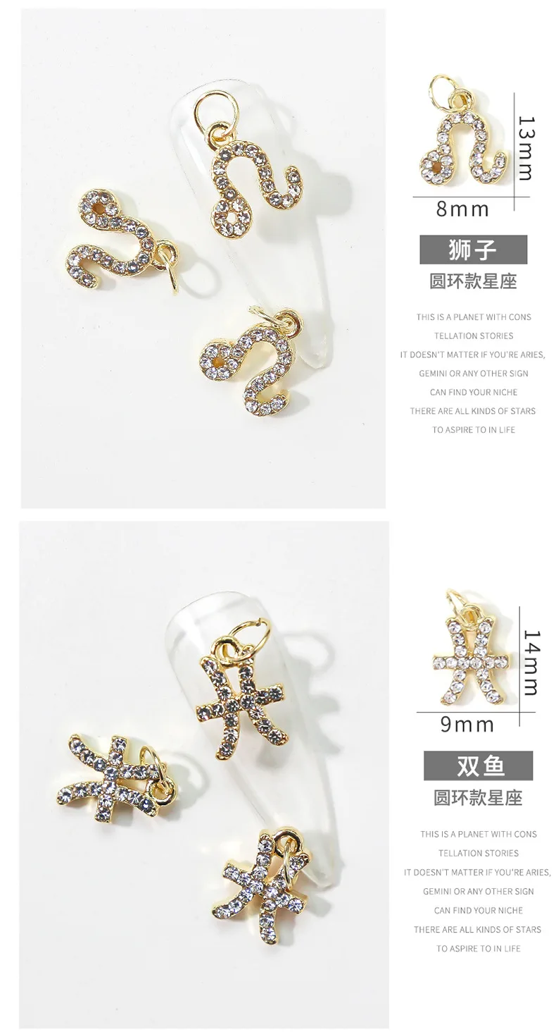 Кулоны со знаками Зодиака:Каждый Шарм зодиака представляет собой своего рода созвездие, которое может отражать вашу индивидуальность и ум, поэтому, независимо от того, используется ли он для ювелирных аксессуаров или нейл-арта, он заставит людей чувствовать себя как новыми, так и таинственными