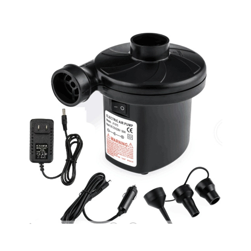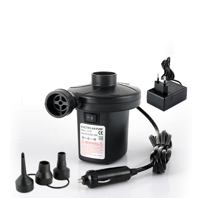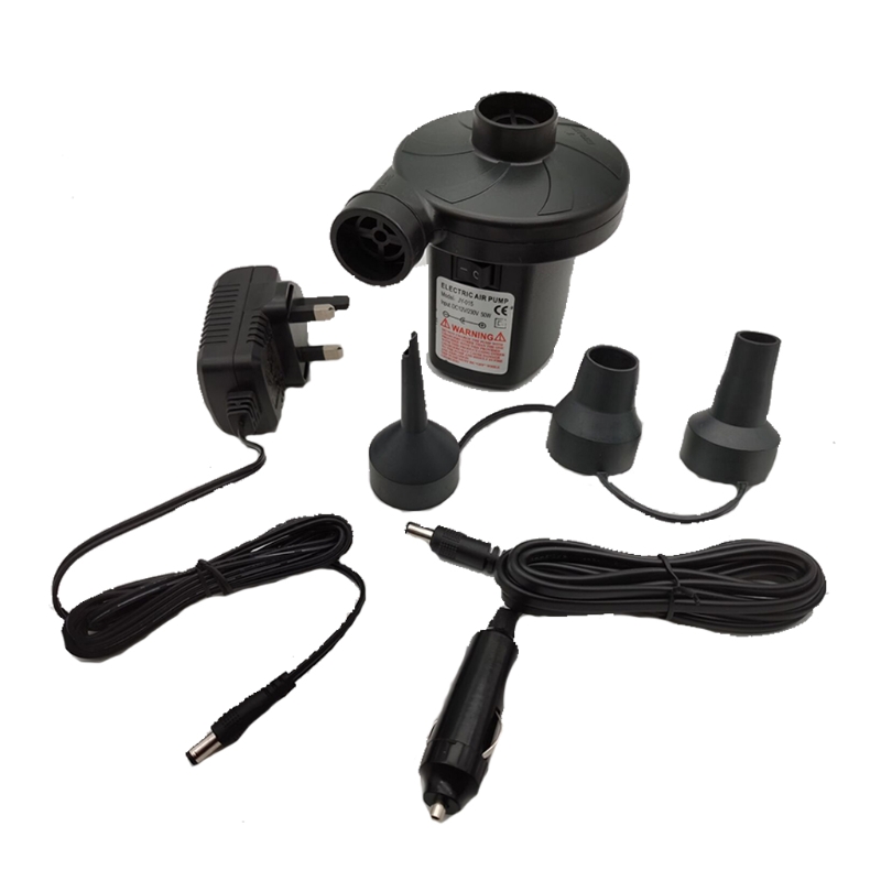 Насос имеет вилку и три взаимосвязанных насадки, поэтому подходит для большинства надувных предметов.