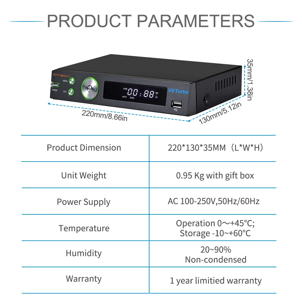 Спутниковый ресивер GTMEDIA V8 Turbo DVB-S2/T2/C поддерживает слот для карт Tivusat CA ccam 1080P Full HD H.265 Pk V8 NOVA в наличии в Испании