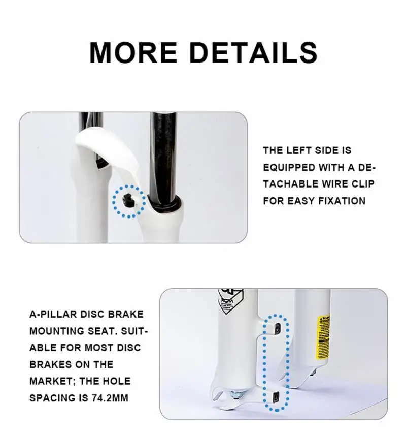 Функция: амортизация и сопротивление сжатия. Материал из алюминиевого сплава и твердая i-образная Арка моста делают переднюю вилку более прочной и стабильной, а поверхность имеет эффект удаления грязи; Регулировка отскока может задавать скорость отскока и адаптироваться к различным внедорожным участкам