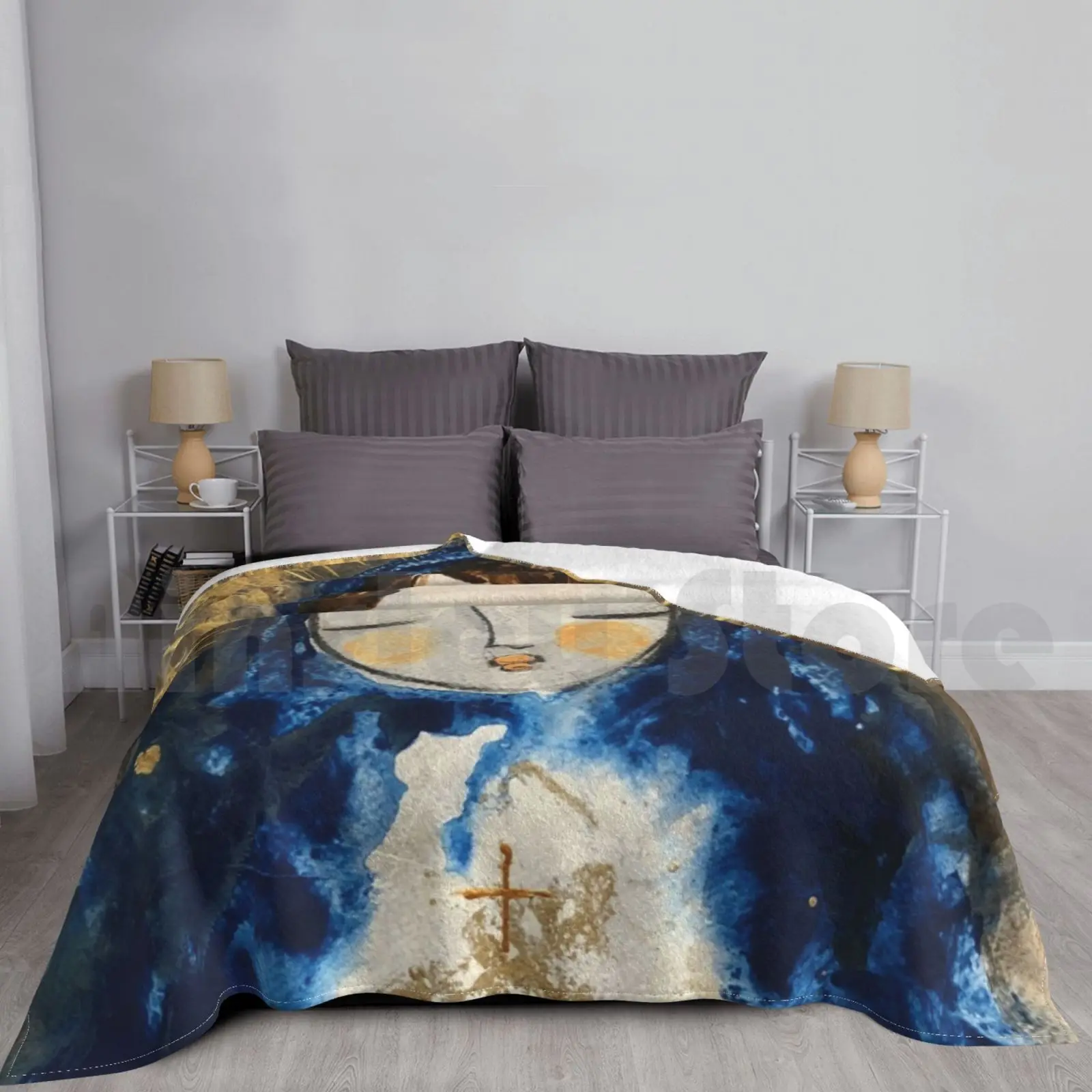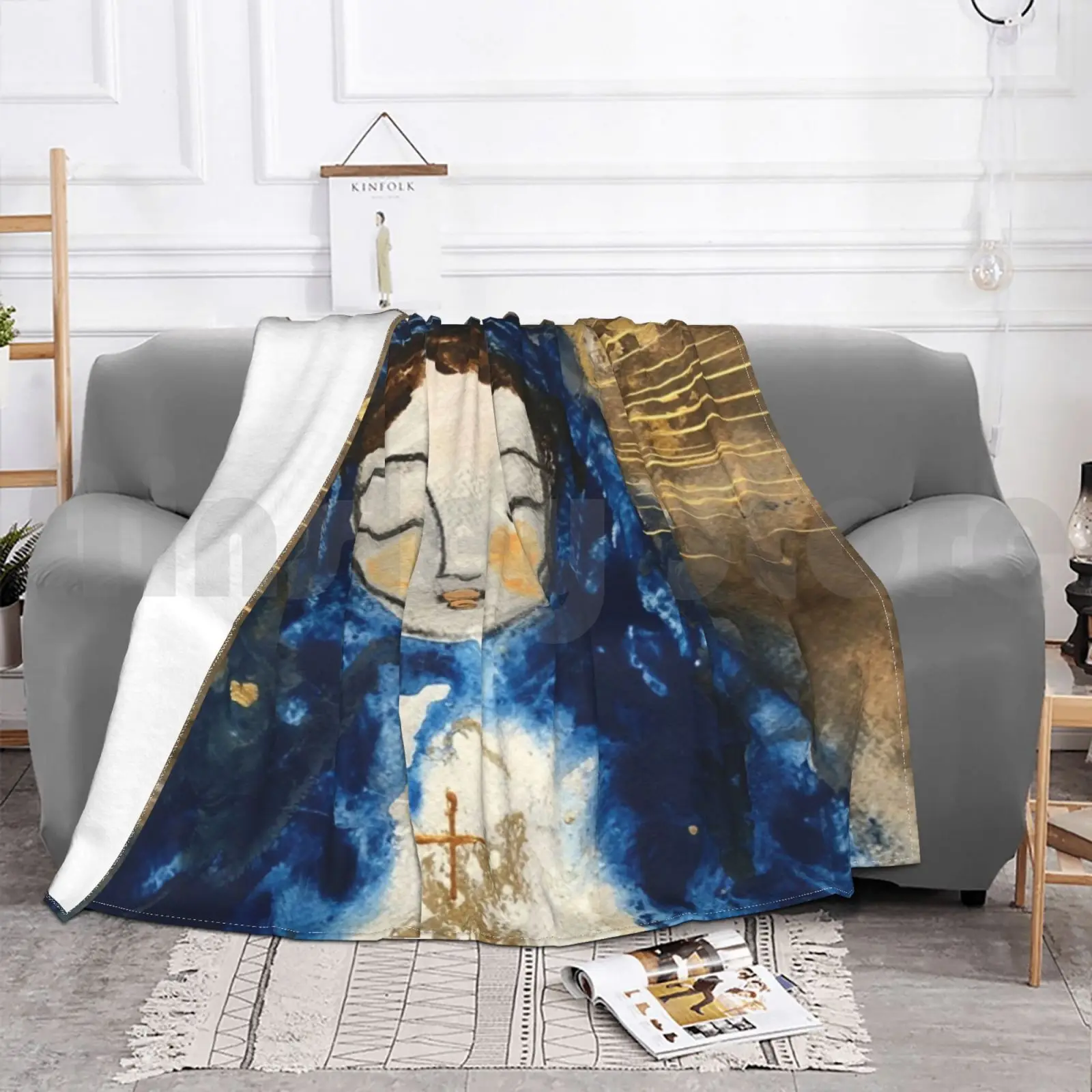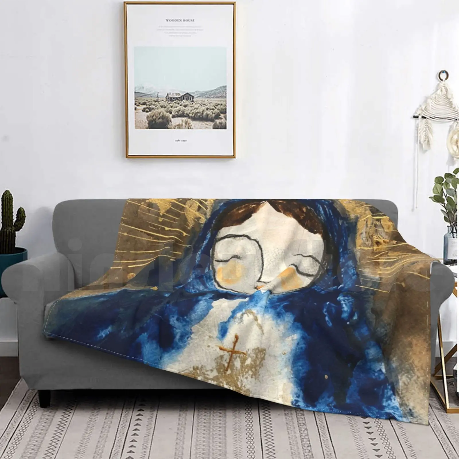 Отзывы о Одеяло маленькая Дева Мария для дивана-кровати путешествия голубой золотой