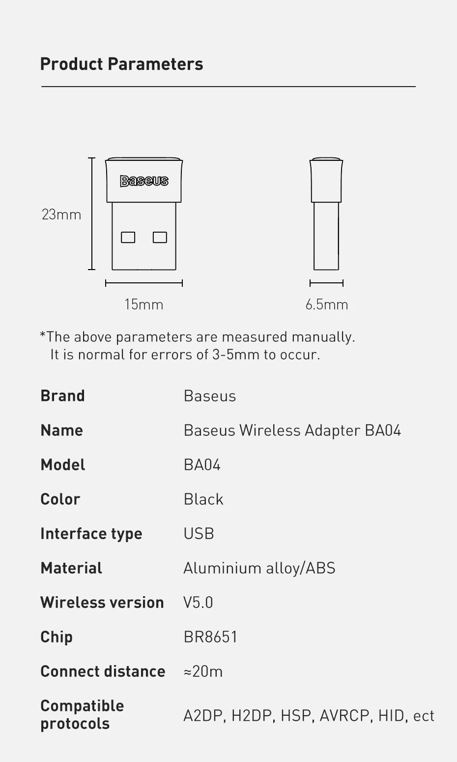 Отзывы о USB Bluetooth-адаптер Baseus Bluetooth 5 0 музыкальный аудиоприемник передатчик для ПК динамик