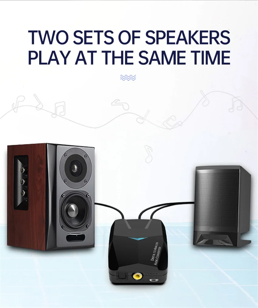 9. Он преобразует коаксиальные или Toslink цифровые аудиосигналы в аналоговые 2RCA L/R и 3,5 мм aux аудио и доступен для подключения к внешнему устройству, например, усилитель через стандартные разъемы в стиле RCA