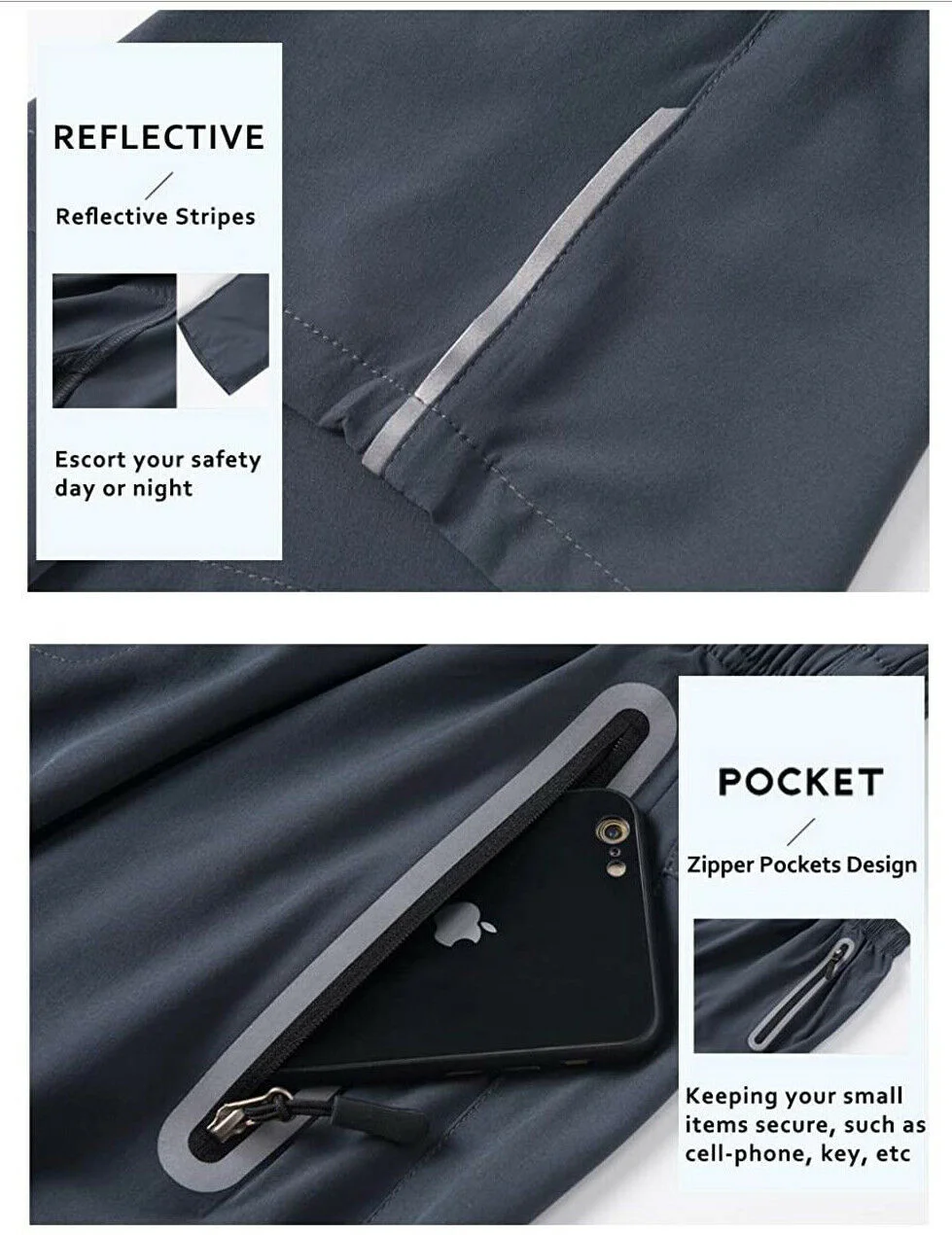 * 4 светоотражающие полосы (2 шт. на кармане и 2 шт. на ногах)