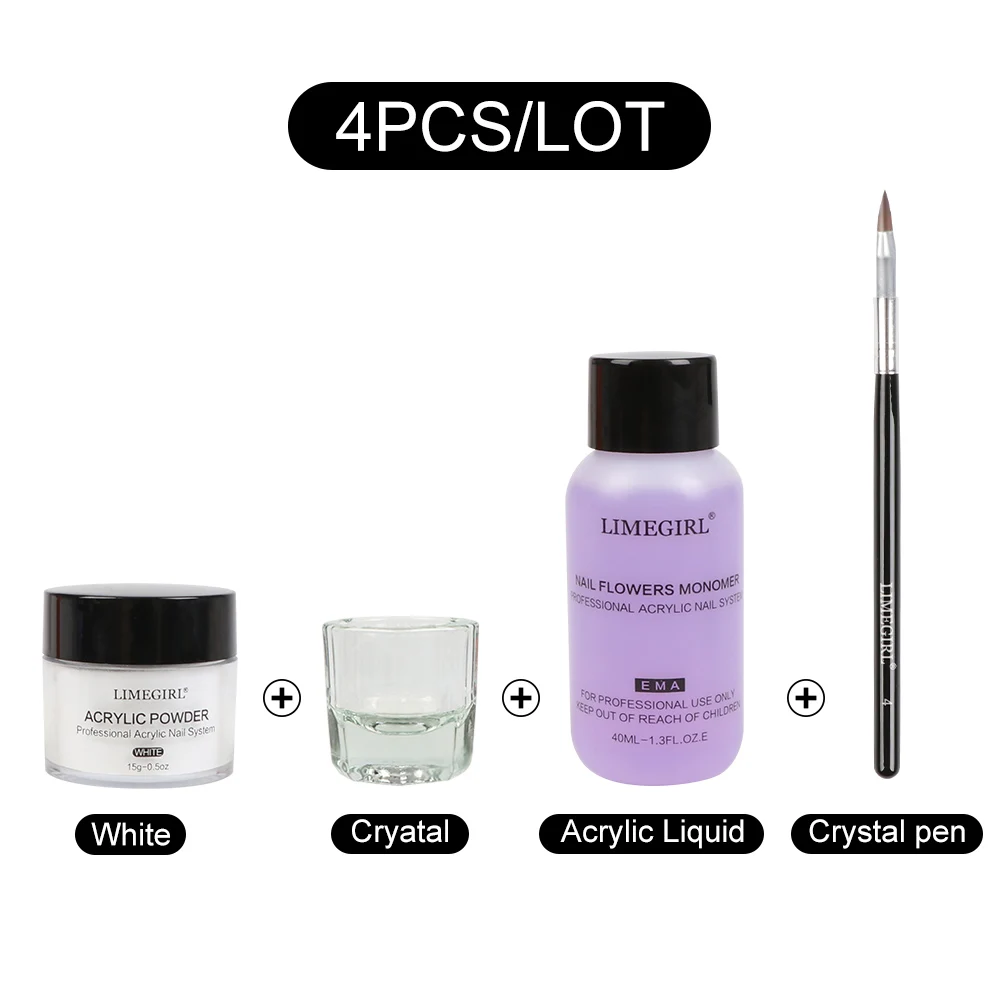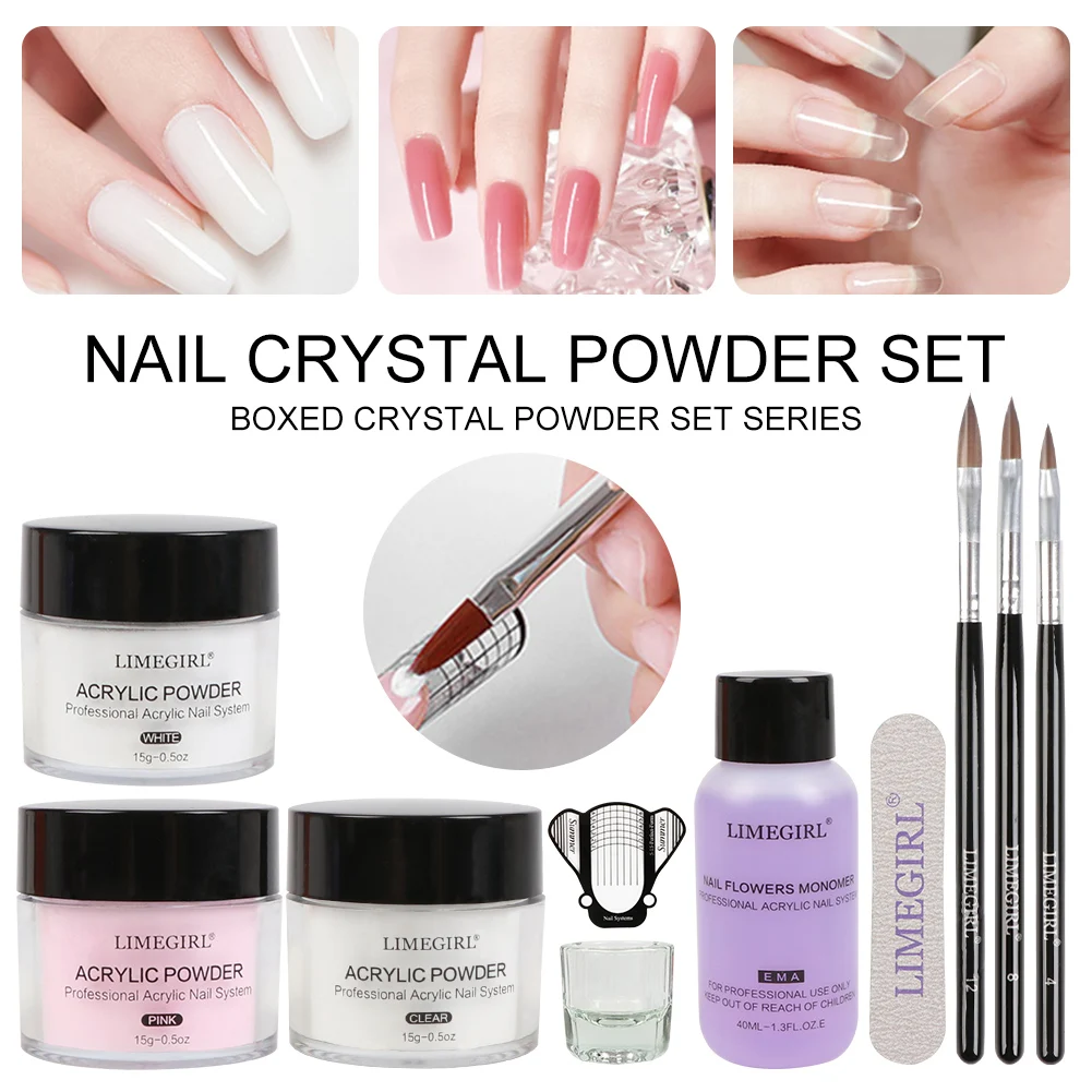#01: 3x акриловый порошок, 1x мономер, 1x стеклянная чашка, 3x Хрустальная ручка, 1x пилочка для ногтей, 1x Форма для ногтей