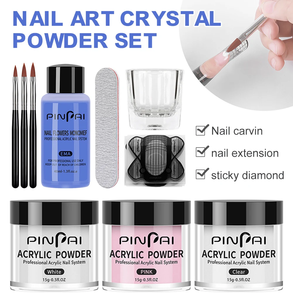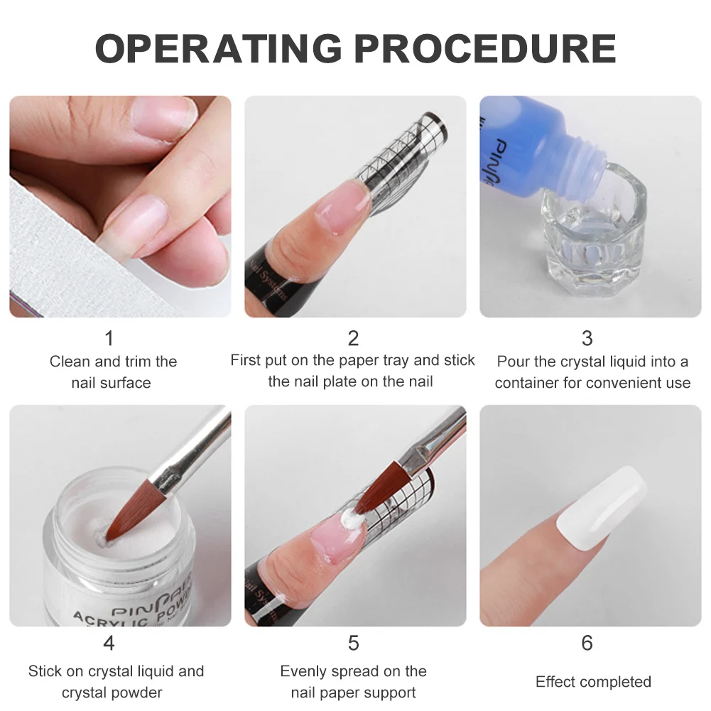* 1. Набор для ногтей включает в себя 1 жидкий мономер, 3 акриловый порошок, 1 стеклянную чашку, 1 ручку для резьбы и 10 форм для ногтей и т. д.