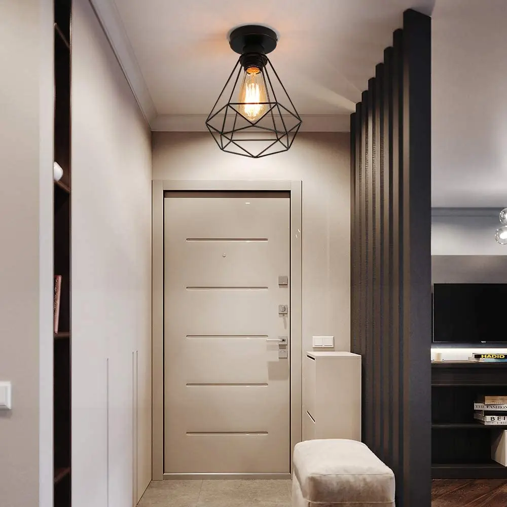E27 ретро железный потолочный светильник черный винтажный лофт украшение промышленный металлический каркас подвесной потолочный светильник для коридора прохода балкона