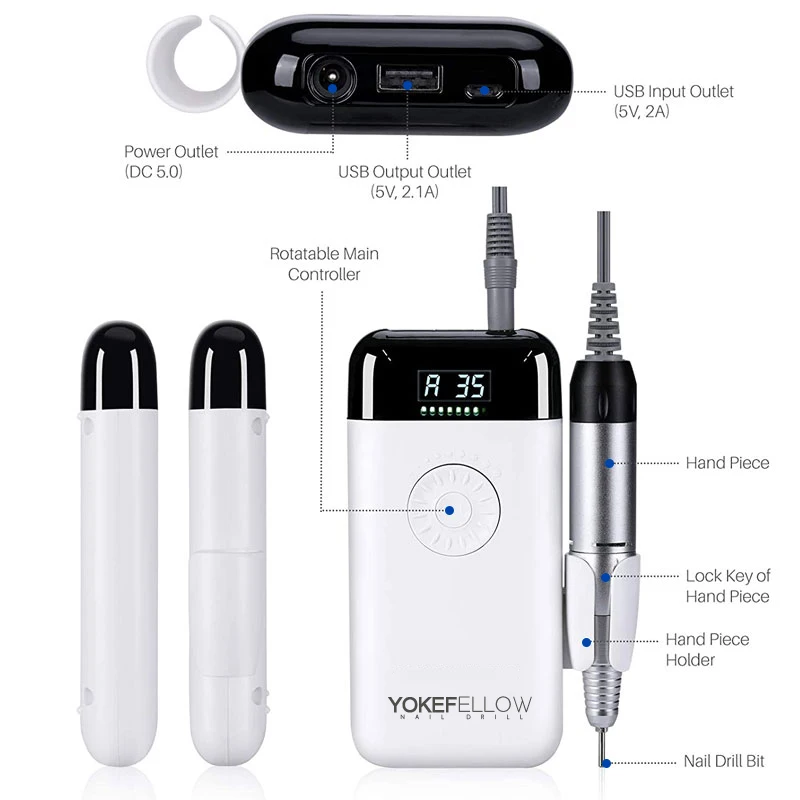 ❤Перезаряжаемая дрель для ногтей, может быть внешним аккумулятором.